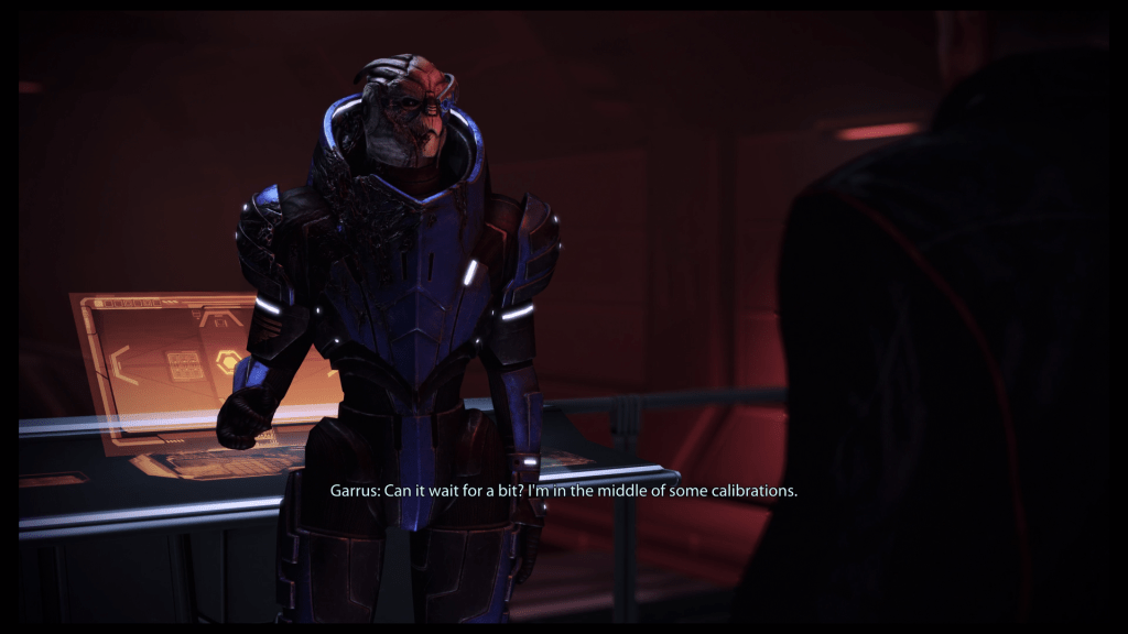 On that note, I was always impressed when a seemingly (I mean, I can’t prove that it is) rare or unique dialogue was triggered by my choices. One example is if you bring Garrus with you during the finale of the Lair of the Shadow Broker mission. Another is if you talk to a lady named Yeoman Chambers on the Normandy. She’s in charge of monitoring the crew in case they have any issues that need addressing. If you talk to her and she says that one of the crew members was looking for Shepard and then you go and talk to said crew member, Shepard will mention that Chambers said he should talk to them. I love stuff like that in video games. I know it’s a lot of work to write a game like that and I want anyone who has ever put in said work to know that I greatly appreciate it. I can’t get enough of things like that.