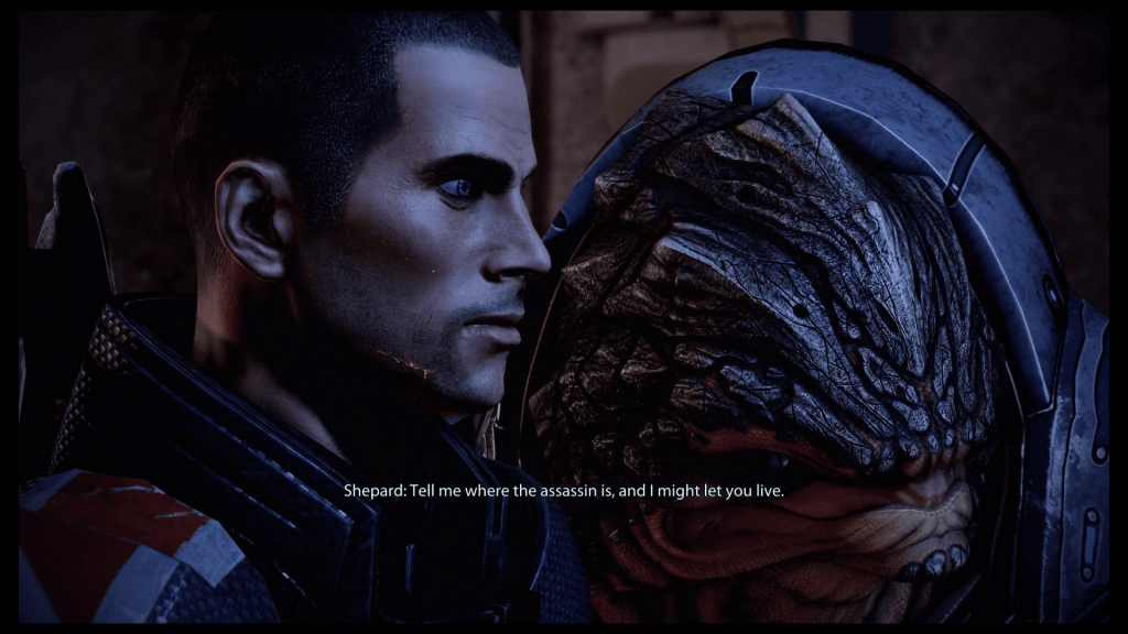 One thing I really liked about the story is that it introduces a character who will play an important role throughout the rest of the trilogy (I know because I have finished Mass Effect 3 now as well). He is a mysterious figure, some would say illusive, and the best way I can think of to describe him is to relate an anecdote to you all. I was discussing the Mass Effect trilogy with a friend of mine after I had finished the first game and I remarked that I really liked Saren as a villain. My friend replied “Once you play Mass Effect 2, you’ll forget all about Saren. Trust me.” I can only conclude that my friend had this new character in mind when he said that. Although I have not entirely forgotten about Saren, I must agree with my friend’s sentiment.