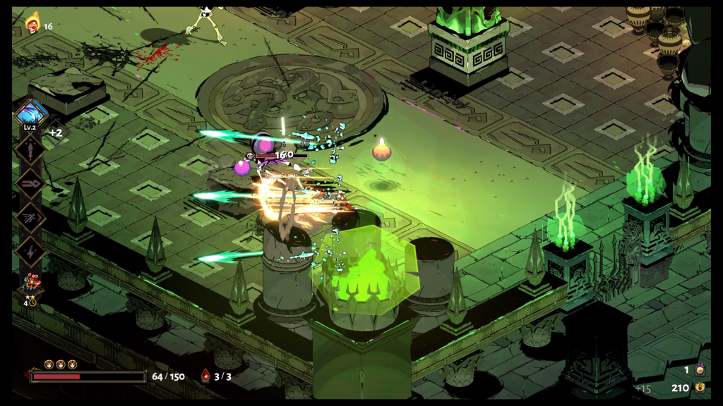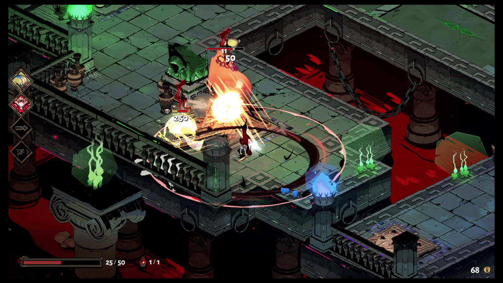 This problem can be alleviated if you simply move and don’t spend too much time in one spot which I highly recommend. Look, I don’t like telling people how to live their lives but if you’re not always moving while playing Hades then you’re doing it wrong. Zagreus has a nice running speed but he also has a dash which acts as a dodge. There was something sublime about dashing, dodging, and weaving between groups of adversaries while striking individual enemies along the way. There is a frenetic yet elegant feeling to this combat that is hard to put into words and it’s something you don’t get in many games. I’m failing you all with this description here but trust me when I say that the combat feels good in all the right ways.